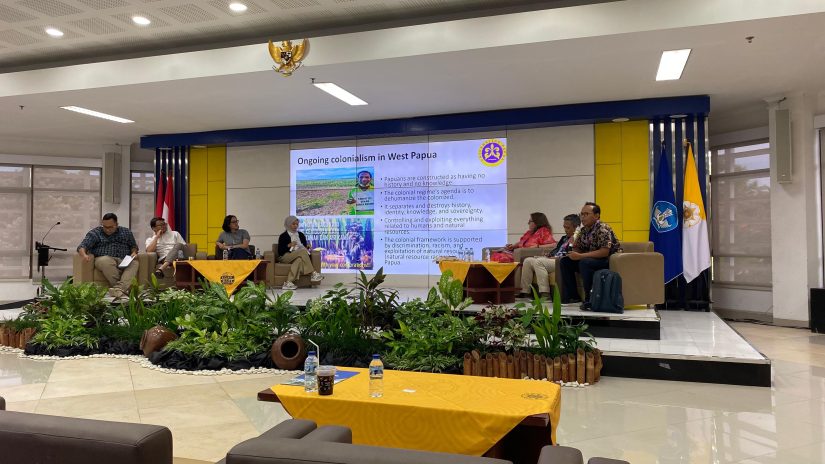 Pada Rabu, 1 Oktober 2025, Departemen Sejarah Universitas Gadjah Mada berkolaborasi dengan Program Studi Magister Hubungan Internasional Fakultas Ilmu Sosial dan Politik Universitas Gadjah Mada mengadakan suatu kegiatan launching buku “Rethinking Histories of Indonesia: Experiencing, Resisting, and Renegotiating Coloniality” yang coba dikolaborasikan serta dikaitkan dengan rangkaian kegiatan Go South (Annual Convention on The Global South) 2025 yang mengusung tema 70 Years Bandung Spirit (Re-Invigorating Decolonial Struggle Amidst Geopolitical Turbulence). Turut hadir dan berpartisipasi dalam kegiatan ini beberapa dosen dan tenaga pengajar dari Departemen Sejarah Universitas Gadjah Mada seperti Dr. Abdul Wahid M.Hum., M.Phil., Dr. Widya Fitria Ningsih S.S., M.A., dan Dr. Wildan Sena Utama S.S., M.A., yang berpartisipasi sebagai pembicara, penanggap, dan juga moderator dalam kegiatan ini. Disamping para ahli dan peneliti yang berasal dari Universitas Gadjah Mada, kegiatan peluncuran buku ini pula turut dihadiri oleh para peneliti dari luar Universitas Gadjah Mada utamanya yang turut terlibat dalam kajian dan penulisan buku ini seperti Prof. Katherine McGregor (University of Melbourne), Brigitta Isabella M.A. (Institut Seni Indonesia), dan Dr. I Ngurah Suryawan (Universitas Papua).